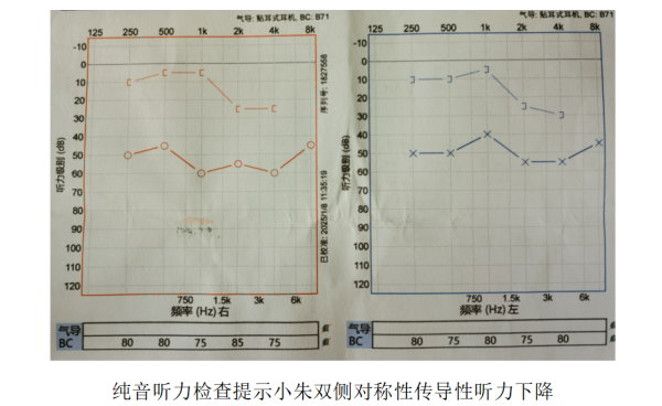 (南华大学附属长沙中心医院)耳鼻咽喉头颈外科首席专家冯永教授的帮助下,查明病因为“先天性听骨链畸形、听骨链中断”,通过植入人工听骨,替代中断的听骨,术后朱云轩右耳听力明显提升。