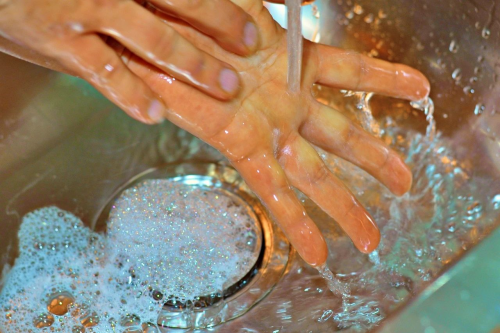 勤洗手:饭前便后、接触公共物品后,用肥皂、洗手液和流动水揉搓至少15秒。