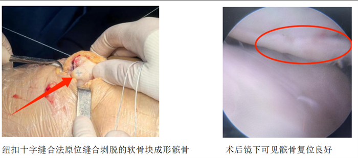 (南华大学附属长沙中心医院)运动医学、创伤关节、骨病科主任丑克介绍,这项联合术式在省内少见,因患者游离软骨骨碎片大,软骨下骨骨质有血运,髌骨内下缘软骨缺损面积大,通过高强度缝线采用纽扣十字缝合法原位缝合剥脱的软骨块成形髌骨,犹如为膝关节打造了一个防护网。手术过程顺利,术后患者恢复良好。