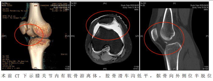 20岁的陈静怡(化名)在打篮球跳跃落地时,不幸发生右膝盖骨脱位。虽然后来自行复位,但随即出现右膝疼痛、肿胀及关节活动受限。经医院检查诊断为“急性髌骨脱位,髌骨内侧、股骨外侧髁撕脱骨折”。通过微创手术,成功将“脱轨”的髌骨复位到“轨道”上。