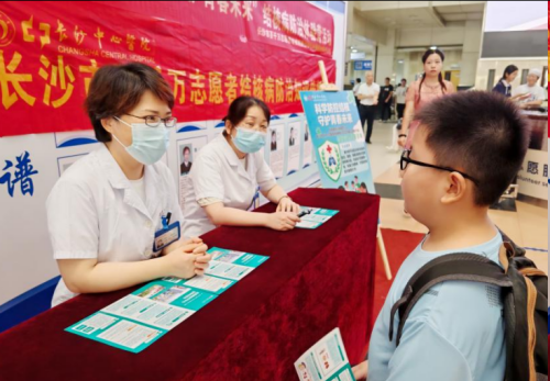 (南华大学附属长沙中心医院)门诊一楼热闹非凡,一场以青少年结核病防治为主题的“无核小卫士”结核病防治实践活动在此火热开展。本次活动由医院团委、肺科医院办公室、学生儿童结核科以及结核病科党、团支部联合举办,40余组中小学生家庭踊跃参与,共同开启这场意义非凡的健康守护之旅。