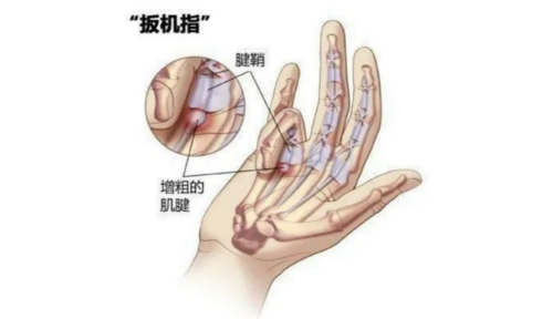 拇长屈肌腱是控制拇指弯曲的重要结构,其外部包裹的腱鞘如同“保护套”,减少肌腱滑动时的摩擦。当腱鞘因慢性劳损或炎症增厚时,肌腱通过狭窄的腱鞘时会受阻,导致疼痛、活动受限甚至弹响,严重时手指无法伸直,就会出现“扳机指”,也就是狭窄性腱鞘炎。