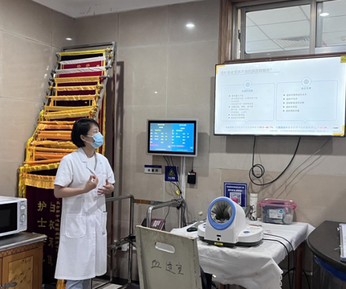 近日,我院肾内科党支部联合营养科开展“维持性血透患者饮食健康管理”系列专题讲座。自6月起,已在血液净化中心举办三场专题活动。