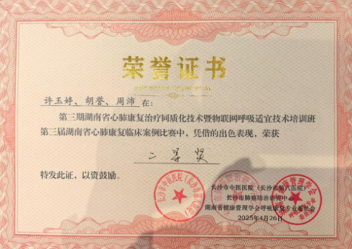 在省级康复学术舞台上,我院呼吸康复团队何梦宇、曾秋霞、许玉婷、胡誉、周沛、杨璐、周泽芝、袁清、王青等团队成员,凭借扎实的专业功底、敏锐的临床洞察力以及出色的团队协作能力,在多个省级案例比赛中大放异彩,斩获一等奖、二等奖等多项荣誉。