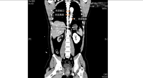 8月7日清晨6时,朱宥安突感胸背部剧烈撕裂样疼痛,伴随大汗淋漓、濒死感和下肢麻木,被家人紧急送往91短视频 (南华大学附属长沙中心医院)急诊科。急诊室内,朱宥安血压飙升至了230/120mmHg(正常值≤130/80 mmHg以上)。经验丰富的急诊医生立即启动胸痛中心绿色通道,主动脉CTA检查确诊为极为凶险的Stanford B型主动脉夹层!