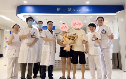 术后,患者被迅速转入急诊重症监护室接受高级生命支持,重症团队24 小时严密监测,精准调控血压、凝血功能,防范并发症。几天后,患者病情稳定转入外周血管介入科病房,在医护人员精心治疗和护理下,闯过感染关、营养关、功能恢复关。8月15日,当患者朱宥安康复出院时,与妻子相拥而笑。随后,他的妻子紧紧握住医护人员的手:“谢谢你们救了我的爱人!救了我们这个家!” 这份沉甸甸的感激之情,是对所有参与救治的医护人员最大的褒奖。
