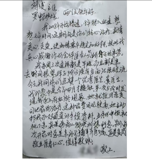 此外,袁建国提到,每次开药问诊时,奚医生总是不厌其烦地细致叮嘱用药禁忌和注意事项,这份耐心与责任心,让他倍感安心。他在信中真挚地写道:“这些看似平凡的点点滴滴,汇聚成黑暗中的光芒,不仅治疗了我的身体,更温暖了我的心灵。”