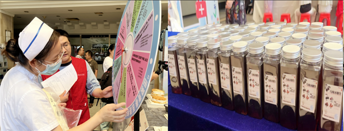 一旁的养生茶饮区,中西医结合科精心配置的乌梅冰糖茶飘香四溢,职工通过趣味问答赢取茶饮,在欢声笑语中解锁节气养生知识。