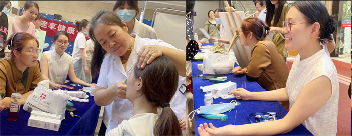 活动首日,医院颐和楼大厅化身“健康游园会”。美容体验区成为当日人气“打卡点”。中医科专家以针灸之术点亮肌肤光彩,针对祛斑、美白、抗衰等问题提供个性化方案。皮肤科医师则为职工剖析肤质奥秘,前来咨询皮肤管理的医务人员络绎不绝。