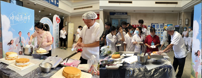 DIY蛋糕区,医务人员化身“甜品大师”,在专业烘焙师的指导下,将新鲜水果、低脂奶油与全麦蛋糕坯组合成独一无二的作品。