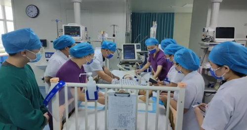 患儿入急救室时生命垂危,已出现意识障碍、颜面发绀、休克等症状,医院第一时间开通绿色通道紧急完善检查,考虑:脾破裂、肝挫伤、双肺挫伤、肺出血、肋骨骨折、股骨干骨折、耻骨骨折等。医务部立即组织急诊外科、儿科、普外科、神经外科、外周血管介入科、胸外科、骨科、手足显微外科、输血科、麻醉科等相关科室会诊,全面讨论手术方式、术中、术后的应急预案。经外周血管介入科与手足显微外科接台手术,行脾动脉栓塞术+肾动脉栓塞术+经皮肾上腺动脉栓塞术+经皮膈动脉栓塞术+经导管肝动脉栓塞术,行右大腿清创、肌肉缝合、股骨骨折切开复位克氏针内固定、外支架外固定等一系列手术,耗时长达7小时。乐乐术后转儿童重症监护室治疗。