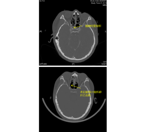手术完成后即刻观察到李琦右眼对光反射恢复灵敏,经过系统的治疗,其右眼视力已恢复至0.1,术后效果显著。目前,李琦正在进一步康复治疗中。此类高难度手术的成功,不仅展现了医院在多学科协作和急重症救治方面的综合实力,也为复杂颅底外伤患者带来了新的希望。