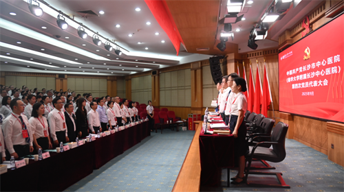 (南华大学附属长沙中心医院)第四次党员代表大会在医院国际学术报告厅隆重开幕。全院174名党员代表肩负重托、齐聚一堂,共绘高质量发展新蓝图。会场气氛庄重热烈,凝聚着团结奋进的磅礴力量。