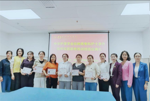 (南华大学附属长沙中心医院)2025年中华护理学会结核病专科护士培训班结业典礼在医疗综合楼四楼会议室举行。护理部主任、基地负责人吴传芳,护理部副主任董启玉,科护士长张灿芝、谢小辉、丁琼,教学组长李静,基地教学秘书、肺结核科二区护士长赵红以及结核病诊疗中心、心胸外科、脊柱外科护士长和带教老师代表们,与专科护理学员们共同参加了结业典礼。