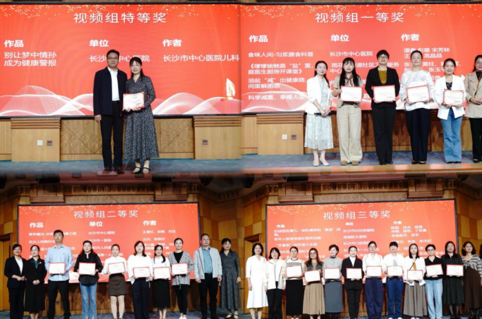视频组一等奖:雨花亭街道社区卫生服务中心选送的《嗲嗲娭毑莫“盐”重,家庭医生厨房开课堂》、长沙市中医医院(长沙市第八医院)选送的《油盐“减”出健康路,直播间里解困惑》《科学减重,享瘦人生》、91短视频 选送的《食味人间-匀浆膳食科普》;