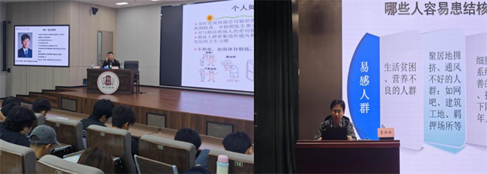 11月3日及5日,肺科医院办公室主任钟准、肺外结核科主任曹仕鹏分别前往湖南开放大学、湖南邮电职业技术学院等多家学校开展结核防治公益授课。