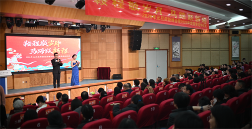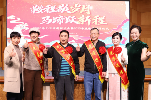 健康管理中心学术报告厅灯火温暖,由医院工会、人力资源管理部、离退休人员管理办公室和员工兴趣协会共同举办的2026年元旦迎新联欢会暨2025年度荣誉退休仪式在此隆重举行。党委书记邓平,党委副书记、院长陈智毅,副院长陈胜文,临床学院副院长赵飞骏、纪委书记杨凯峰、党委委员曹理言及2025年退休职工、工会委员、员工兴趣协会会长、工会小组长等齐聚一堂,在这新旧交替的美好时刻,共赴一场兼具仪式感与艺术气息的年度盛会。