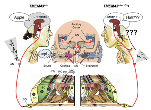 冯永教授团队通过对一个来自中国的常染色体显性耳聋家系进行分析,根据临床表型诊断为听神经病谱系障碍(也称为听神经病),遗传学分析发现TMEM43基因的杂合突变导致了该家系的听神经病,并进行了验证。与此同时,韩国研究团队也在一个韩国的听神经病家系中发现该基因相同的突变位点。双方决定联合发表这一研究成果。冯永、Byung Yoon Choi(韩国首尔大学盆唐医院)和Justin Lee(韩国基础科学研究所)为该论文的共同通讯作者。Minwoo Wendy Jang(韩国大学)、Doo-Yi Oh(韩国首尔大学盆唐医院)、Eunyoung Yi(韩国国立木浦大学)、刘学忠(美国迈阿密大学)和凌捷(中南大学湘雅医院)为该文的共同第一作者。中南大学湘雅医院的梅凌云、贺楚峰、蔡鑫章、陈红胜、桑树山、刘贤霖共同参与了本研究。