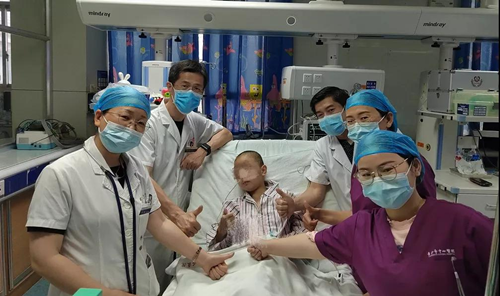肿瘤是切除了,病理切片回报结果也证实是良性畸胎瘤,但术后的管理依然任重道远。由于术后肿瘤压迫解除,难以避免的并发症出现了:神经内分泌功能紊乱加重,出现尿崩,循环血量不足,严重电解质紊乱,稍不注意就可能导致生命危险,甚至留下严重神经系统后遗症。面对挑战,李嘉主任带领儿童重症医学科医护团队,联合神经外科、内分泌科、康复科、高压氧科等多学科合作团队对患儿进行严密监护和精细化管理。面对中枢性神经内分泌紊乱这个非常棘手的问题,儿科医护人员时时刻刻派专人守在患儿身边,监测心率、血压、中心静脉压、尿量及电解质等,最危险时甚至一个小时就要调整用药。经过2周夜以继日的治疗,患儿生命体征逐渐趋于稳定,各项指标也恢复正常。每天交接班时,大家第一件事就是走到孩子床旁叫他的名字,虽然当时的东东意识不清,但医生护士们依然每天坚持用温暖的语言,鼓励他一定要加油,一定要好起来。慢慢的,小东东从一开始的昏迷不醒,到渐渐开始出现了皱眉、咧嘴、挥手、哭泣或微笑,最后慢慢的睁开了双眼,每天都期盼的寻找着护士小姐姐们的笑脸和声音,护士小姐姐们还自掏腰包给他送了他最喜欢的小汽车玩具。接下来东东肢体运动逐渐恢复,笑容越来越多,和医护人员简单的交流也渐渐频繁,家属紧张的心随着开始慢慢放松下来,内心充满了对医护人员的感激。9月2日,术后27天,东东顺利转出儿童重症监护室,临走之前,他挨个拥抱了在场的每一位医护人员,眼睛里流露出不舍。