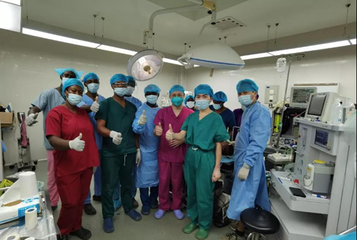 手术结束已经是14:30了,足足做了4个小时。手术结束后塞方的全体医护人员都竖起大拇指,我们带领他们克服困难,在极其有限的条件下一起完成了中塞友好医院的第一例小儿巨结肠手术。