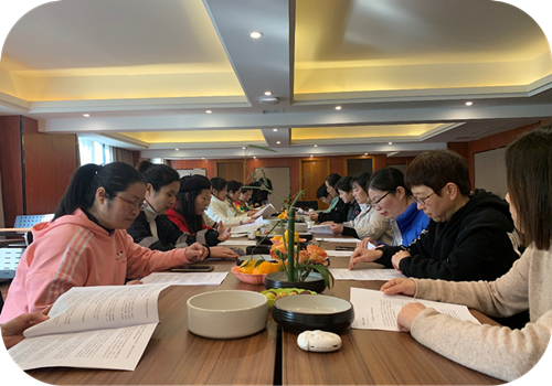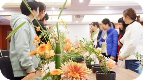 悠然的下午时光总是美好的,读书会结束后,开始了今日最后一个活动——插花。在老师的带领下,大家将自己的喜好和性格,融入主花的选择和整体花型的构建中,以此来减轻压力,放松情绪,权衡取舍,改善身心状况。我们相信:当我们再次面对患者及家人时,那份关爱和责任,将如同亲手插的花一样,更加绚丽动人。