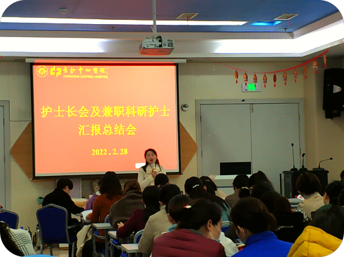 2022年2月28日下午,我院兼职科研护士年终汇报会在呼吸诊疗中心一楼会议室召开,全体护理部主任、护士长参加了会议。