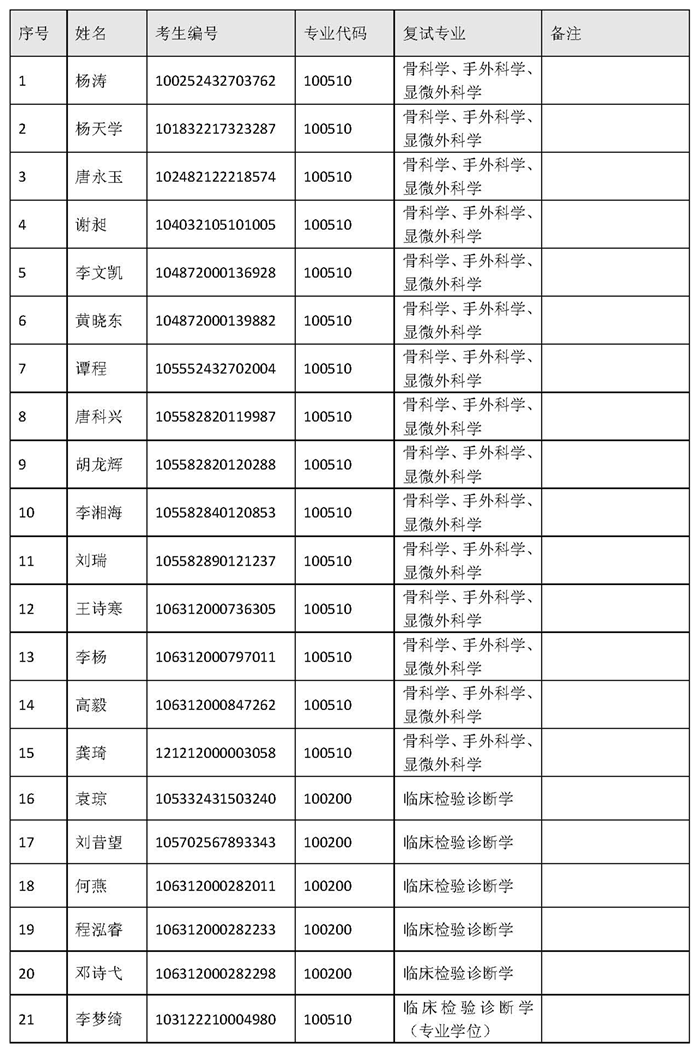 南华大学附属长沙中心医院第一批调剂复试名单公示