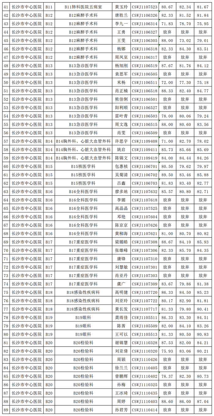 2022年长沙市卫生健康委员会直属事业单位第一批(第二批次)、第二批公开招聘考核成绩公示