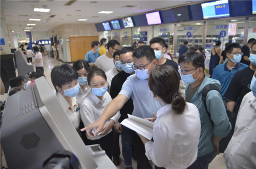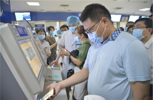 随后检查组在门诊大厅现场考察了医保电子凭证应用情况,亲自体验了医保电子凭证建档、挂号、缴费、拿药等场景的应用,也观看人脸识别系统激活医保电子凭证实现建档、挂号、收费等功能。
