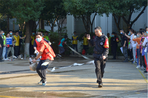 在消防安全知识竞赛中,各分工会队伍派出5名队员,通过必答、抢答题两个环节开展了一场思想与智慧的较量。在火场逃生赛中,各队又派出6名队员共同完成佩戴火灾逃生面具、使用灭火器以及逃出消防逃生体验屋等一系列项目。队员们充分发挥团结协作精神,将平时掌握的消防技能熟练地运用在比赛中。在水枪水带连接赛中,各队派出3名队员比拼,通过消防专业老师的演示和讲解,队员们迅速掌握了水枪水带的连接方法,在比赛中展现了快速反应的能力。