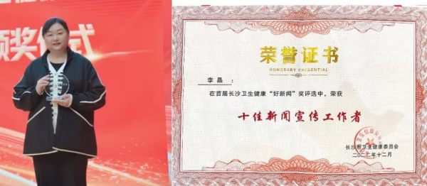 党委办副主任李晶荣获首届长沙卫生健康“好新闻”奖十佳新闻宣传工作者