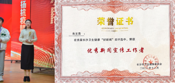 党委办朱文青荣获首届长沙卫生健康“好新闻”奖优秀新闻宣传工作者