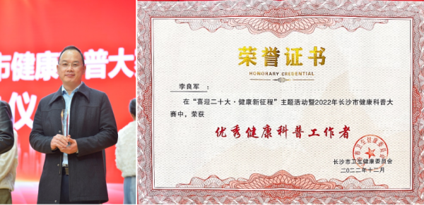 关节外科李良军副主任医师荣获2022年长沙市健康科普大赛优秀健康科普工作者