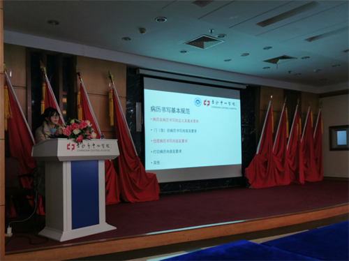 随后,医务科详细解读了18项医疗核心制度及医患沟通,重点讲述了临床实习中如何进行医患沟通,在工作中应该做到以病人为中心,以质量为核心,树立全心全意为病人服务意识。同时进行了病历书写规范培训,强调了完整、真实、准确的做好病历书写的重要性。临床骨干教师以病例分享的方式将内科疾病诊断思维娓娓道来。教学督导结合自身经历对医学生如何做好一名实习医生做了精彩报告。医院感染管理科进行了医院感染管理与防护的专题培训,同时强调了医院对疫情防控的相关要求。