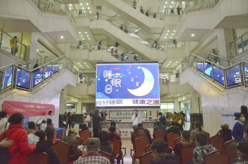 (南华大学附属长沙中心医院)神经内科在医院门诊举办世界睡眠日科普义诊活动,现场邀请市民亲身体验治疗睡眠障碍的催眠放松训练。
