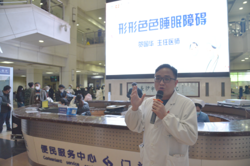 (南华大学附属长沙中心医院)神经内科副主任、主任医师贺国华在义诊活动的科普环节为市民生动讲解了“形形色色的睡眠障碍”。贺国华表示,良好的睡眠对人体健康有积极作用。近年来,我国睡眠障碍发生率日益升高,睡眠障碍患者呈现年轻化趋势,且最常见的两种睡眠障碍类型为睡眠呼吸障碍和失眠障碍。