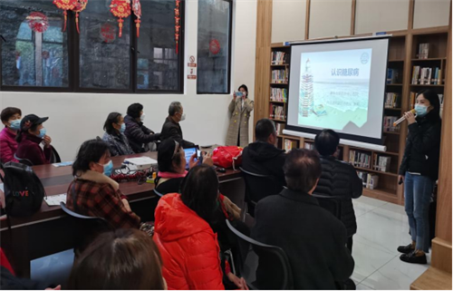 内分泌科党支部党员、副主任医师唐莉进行《认识糖尿病》专题讲座,她用通俗易懂的语言,帮助老年居民了解疾病知识、走出常见误区、提高血糖监测和血糖管理水平,规范慢病治疗手段等知识,深受群众好评。