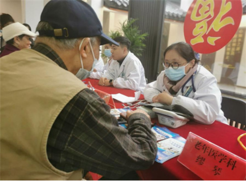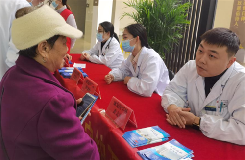义诊现场,医护人员分工协作,为居民测量血压、血糖,就群众关心的高血压、心脏病、糖尿病、关节劳损疼痛等常见问题进行耐心解答,并针对性提出保健、用药等建议。