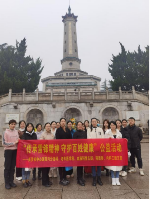 (南华大学附属长沙中心医院)内科党总支所辖内分泌科、老年医学科、血液科党支部以及院团委、内科三团支部携手湖南烈士公园开展“传承雷锋精神 守护百姓健康”公益活动,为辖区居民提供健康讲座、慢病咨询、康复理疗、爱心义剪等服务。