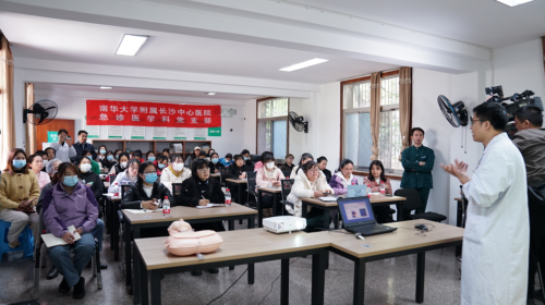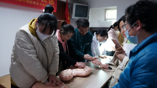 (南华大学附属长沙中心医院)急诊医学科党支部医护团队来到雨花区圭塘街道中南院社区卫生服务中心,为社区居民、30余名幼师及小学老师进行急救知识和技能培训。