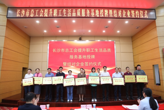 4月19日,长沙市总工会召开 “提升职工生活品质服务基地”授牌暨结对企业签约仪式,我院荣获长沙市首批“提升职工生活品质服务基地”牌匾。