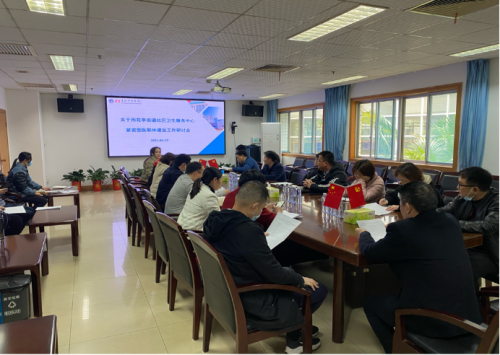 紧密型医联体建设作为医院2023年度十大重点工作之一,同时也是医院三级复评审查的重要内容。今年以来,社会工作办针对雨花亭中心的合作模式重新进行了定位和研究,通过梳理该中心提出的合作建议及实际需求,按照“精准帮扶、业务联动、合作共赢”的原则,尝试推行挂靠专科,对点指导模式。3月底,在分管领导蔡岳祥副院长的指导下,社会工作办组织各业务主管部门、相关职能科室及临床科室负责人召开专题研讨会,通报了与雨花亭中心紧密型医联体建设的背景、目的及诉求,进行了交流研讨和任务分解,并组织相关部门、临床科室负责人实地走访,与对方领导班子成员及主要科室负责人就具体合作事项进行详细洽谈。