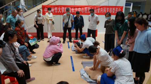 心血管内科党支部启动2023年6月1日-7日“中国心肺复苏周”活动。分别在医院门诊、岳麓区龙骨寺社区、湖南晓光汽车模具有限公司多个场地开展了“关爱生命,救在身边”为主题的宣教活动,结合心肺复苏实操及AED使用为群众带来了多场实用性极强的科普。