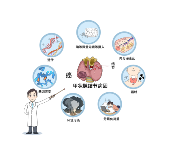 甲状腺结节是由于甲状腺细胞的异常、局灶性生长而导致的一个或多个组织结构异常的团块,包括甲状腺囊肿、结节性甲状腺肿、甲状腺腺瘤、甲状腺癌等甲状腺疾病。随着临床上疾病诊疗技术的发展以及人们自我健康意识的提高,近些年来,甲状腺结节发病率逐步上升,发病人群大多数为中青年女性,浅表彩超检出甲状腺结节患病率为20%- 76%,其中仅5%-15%结节为甲状腺癌。