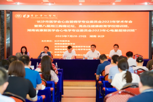 承办的“长沙市医学会心血管病学专业委员会2023年学术年会暨第八届湘江胸痛论坛、高血压健康教育学校培训班、湖南省康复医学会心电学专业委员会2023年心电基层培训班”在我院隆重举行。本次学术会议采取线下会议的方式,吸引了来自长沙市内各医疗机构超过300多名心血管内科同行现场学习参与互动。