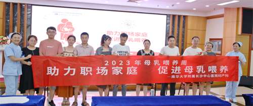 (南华大学附属长沙中心医院)产科在院办公楼二楼举办了一场以“助力职场家庭,促进母乳喂养”为主题的宣传教育活动,此次活动除了母乳喂养相关知识的“传经送宝”外,还有准爸爸的“神秘体验环节”,准妈妈们纷纷拉着先生一起报名,共有近150人参与了此次活动。