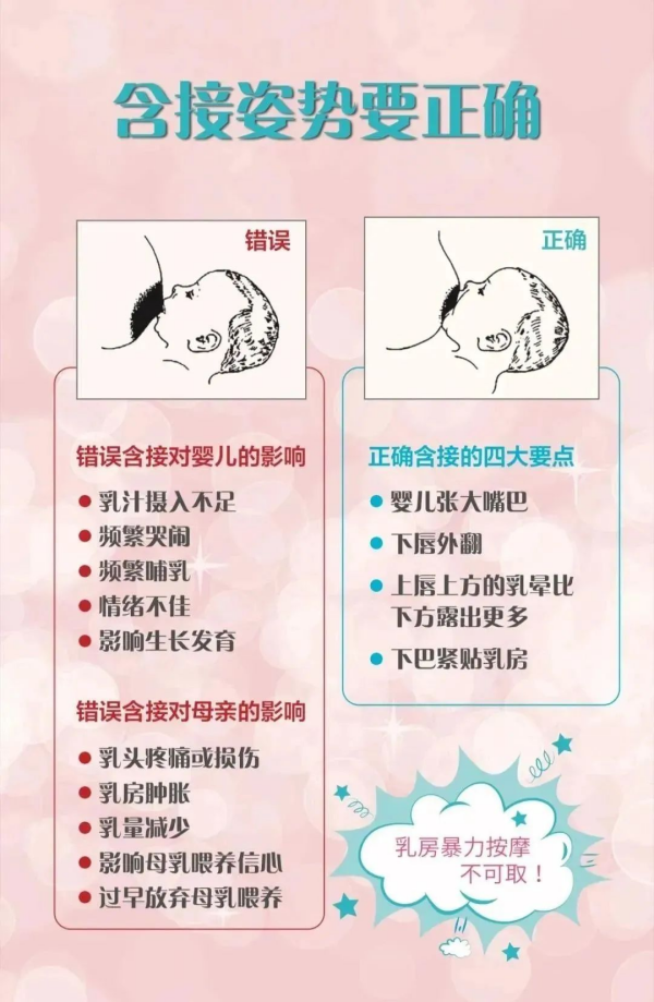 哺乳首先要让妈妈处于舒适的状态。1. 宝宝贴近妈妈;2. 宝宝的头与身体呈一直线;3.宝宝的脸对着乳房,鼻子对着乳头;4.不仅要托着新生儿宝宝的头和肩,还要托住臀部。当宝宝张大嘴巴,下唇外翻,此时上嘴唇的乳晕露得比下嘴唇更多,宝宝下巴紧贴乳房,能够看到宝宝深而慢的吸吮,听到宝宝吞咽的声音时,就表明宝宝已经正确吸上母乳了。