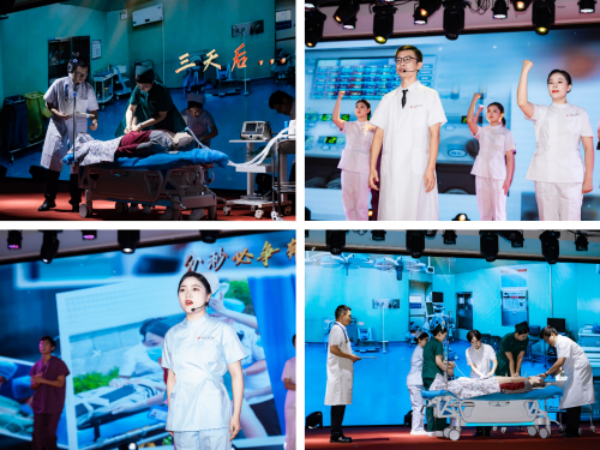 5个精心策划编排的节目穿插在颁奖活动中,以不同形式展现了广大医务工作者敬业爱岗、救死扶伤的工作场景和关爱患者、无私奉献的精神风貌。我院原创的音诗画节目《爱在这里蔓延》以急诊科成功救治一例心跳呼吸骤停的16岁少年的案例为原型,在舞台上展现了急诊人争分夺秒、配合紧密、成功开通ECMO惊心动魄的救治场景,充分展现了我院急诊人沉着冷静、英勇无畏的精神风貌和高效精湛的救治水平,获得会场的热烈掌声。