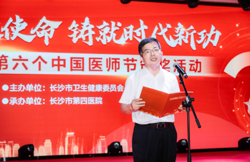 长沙市卫生健康委党组书记刘佳勇宣读《2023年度长沙市优秀卫健人才选树结果》通报。我院杨红忠、刘玉明获“长沙市第六届中国医师节长沙市名医”荣誉,敬前程、刘婷、文锐、申月明、沈枫、江杰获“长沙市第六届中国医师节骨干医师”荣誉,吴传芳、董启玉、刘增粮、周兰、杨璐、刘湘陵、张聪颖、林航、肖敏、龚艳辉、张思梦、陈秋获“长沙市优秀护士”荣誉。