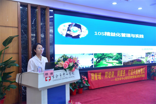 首先,心血管内科护士长邓洁以《10S精益化管理与实践》为主题进行授课。她从10S的项目背景、管理目标及开展形式开始,结合我院10S管理取得的成果与亮点进行讲解,使与会人员充分了解了10S在改善医疗服务环境、提升医疗服务品质、树立医院品牌形象的重要意义。